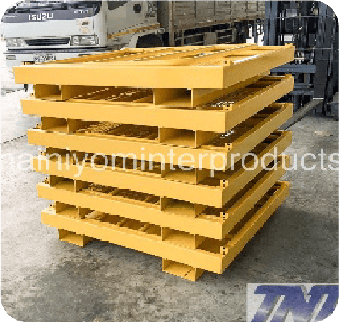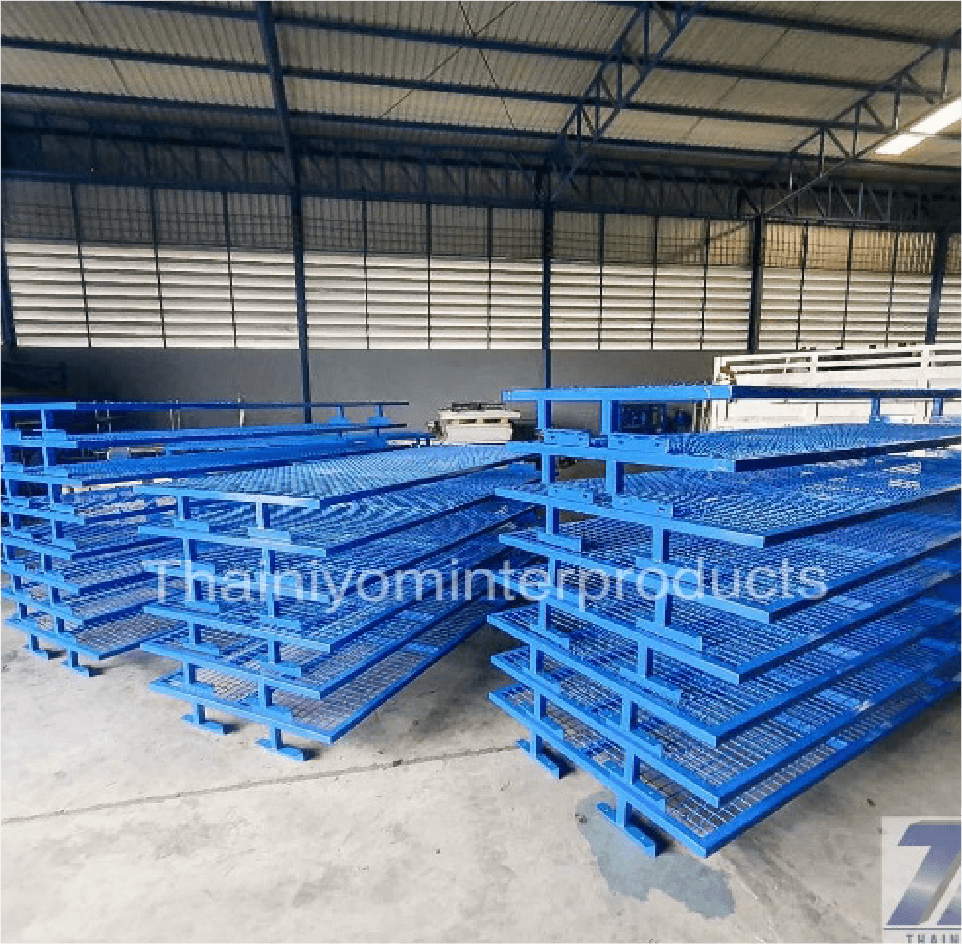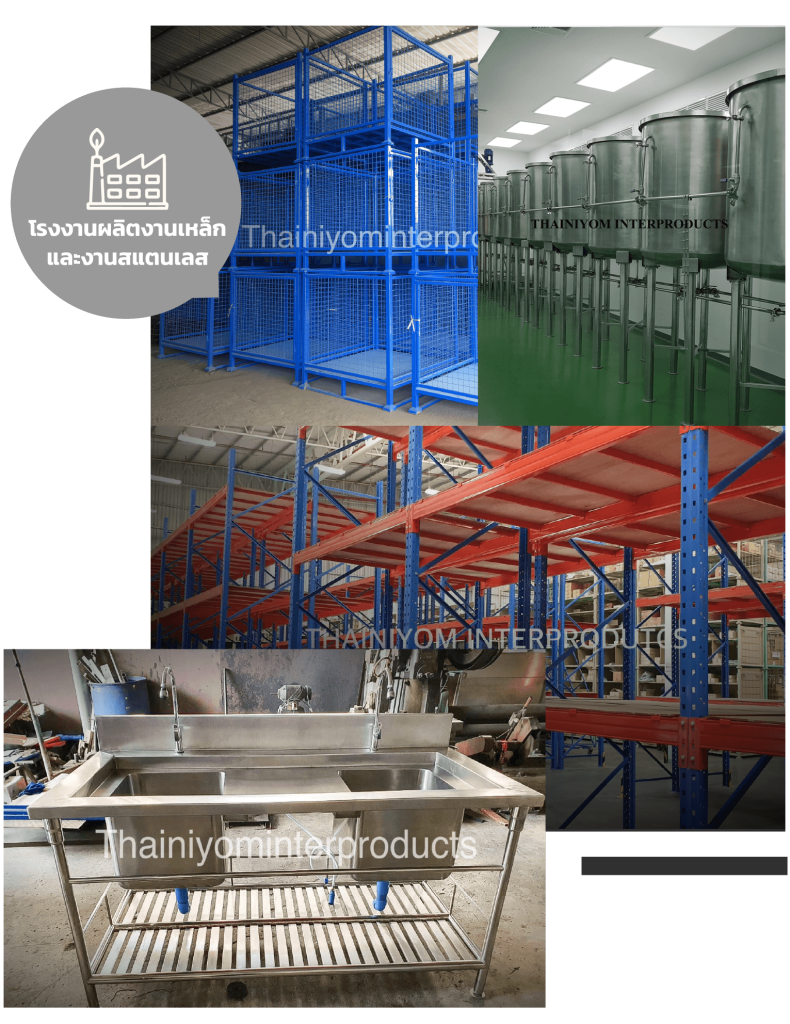งานพาเลทเหล็ก สแตนเลส ที่ใช้ในอุตสาหกรรมอาหาร ห้องเย็น ใช้ในการจัดเก็บสินค้า มีความแข็งแรงยกซ้อนกันได้หลายชั้น หรือออกแบบตามการใช้งาน สามารถติดล้อ พีวีซี ล้อไนล่อน ล้อเหล็ก เพื่อสะดวกในการเคลื่อนย้าย